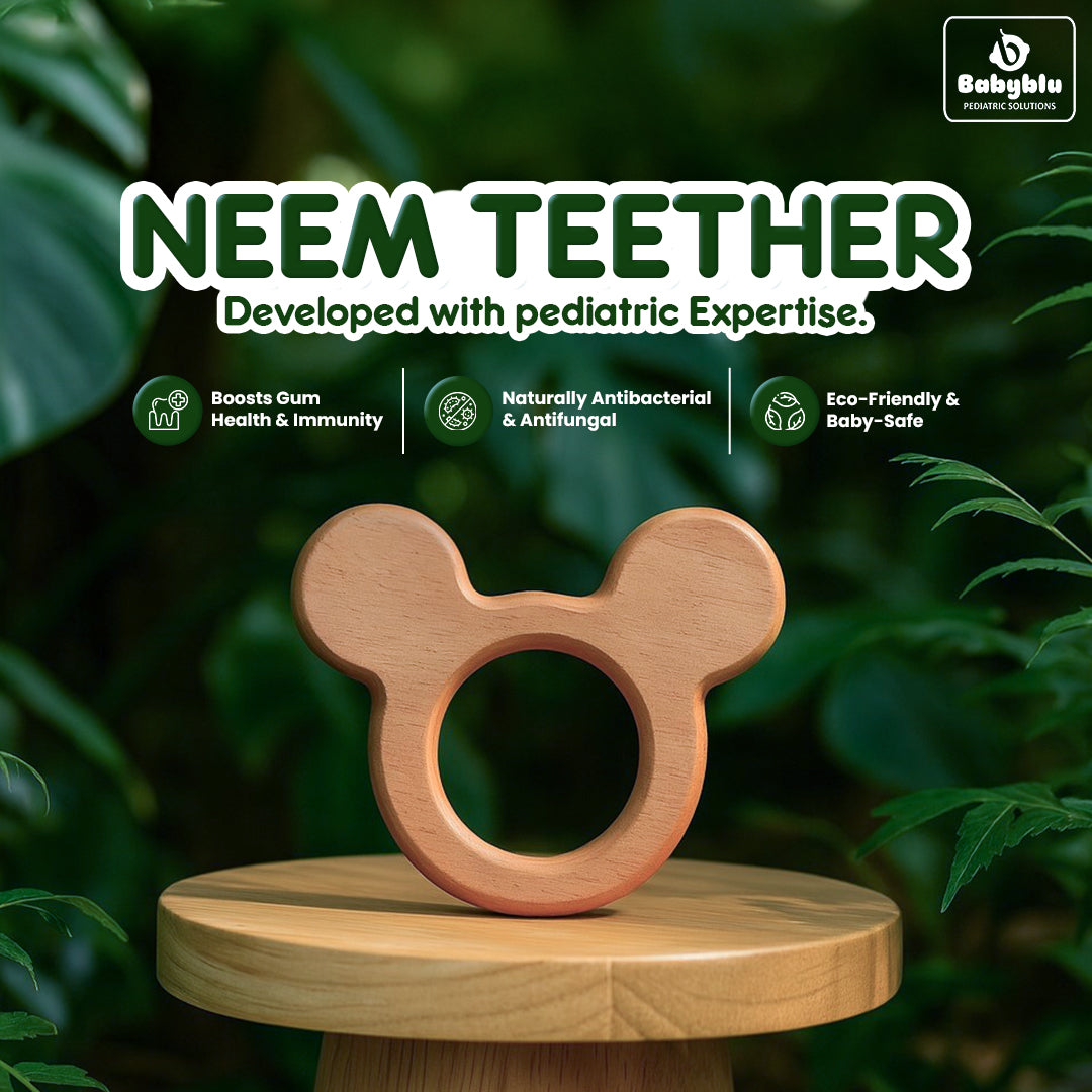 Inspired by the comfort of a baby’s favourite cuddle buddy, The Little Cub Neem Teether is designed to soothe teething discomfort naturally. Made from pure neem wood and shaped for easy gripping, it offers gentle relief while keeping your baby safe and happy.